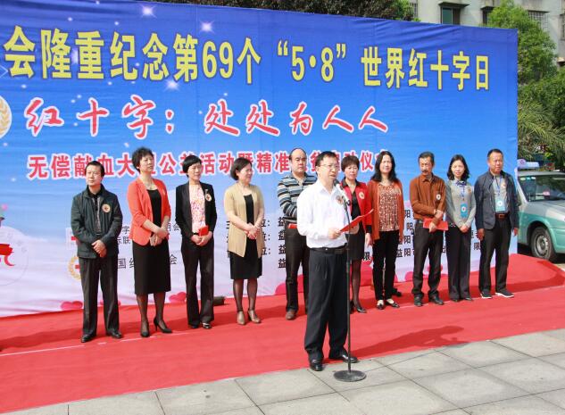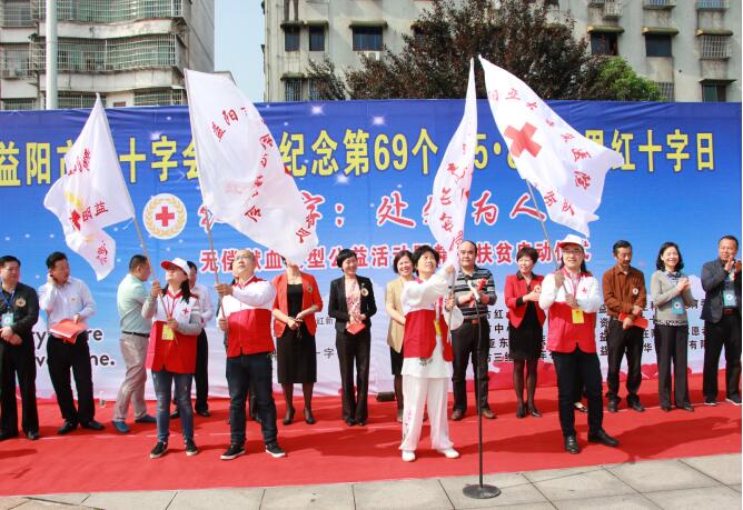 为隆重纪念第69个世界红十字日,5月10日上午,益阳市红十字会联合市卫计委、市中心血站、资阳区红十字会在资阳区鹅羊池广场举行了“红十字-处处为人人”大型无偿献血公益活动暨精准扶贫启动仪式。市人大副主任刘时贵、市政协副主席梅敏亚出席仪式,市政府副市长、市红十字会会长黄东红出席仪式并讲话,市委宣传部,市人大、市政协相关委室,主办、承办、协办单位负责人参加仪式。市政府副秘书长刘正良主持仪式。