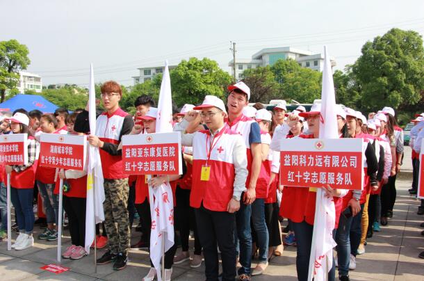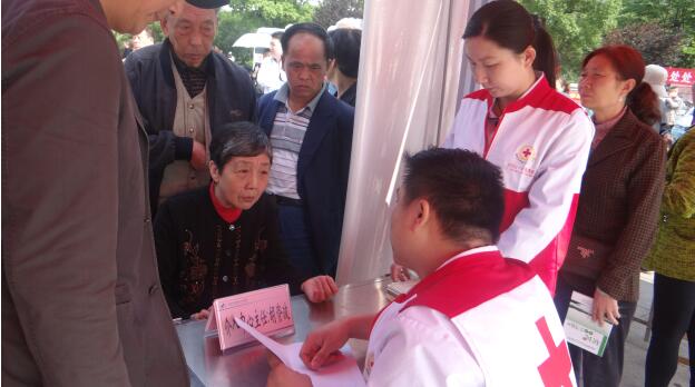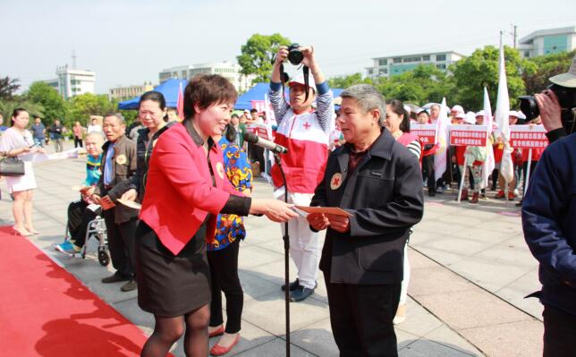 仪式上,为新成立的 4支红十字志愿服务队授旗,开展了志愿者宣誓活动,对10名医疗困难群众进行了现场救助,市中心血站、爱在阳光下志愿者协会组织志愿者采血近万毫升。