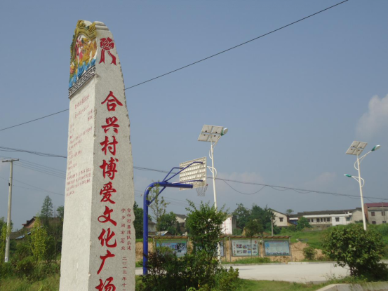 合兴村地处偏远丘陵山区,近年来,随着农村经济的快速发展,农民群众的文化生活需求不断增强,合兴村因势利导大力健全农村文化网络,加大资金投入,坚持农村文化农民办、群众文化大家办,加快了农村文化阵地建设。博爱家园文化广场建设解决村民生活上、文化上和精神文明的需求,方便村民生产生活,提供农闲娱乐场地,满足村民的强烈愿望。建成的村部文化活动中心内设有绿色网吧、棋牌室、羽毛球场、乒乓球室等。博爱文化活动广场的筹建将使农民朋友也和城里人一样拥有一方属于自己的休闲活动场所,可容纳500多名村民应急避险,得到广大村民群众的高度认可,成为新农村建设的新亮点。