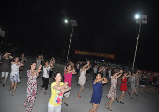 2014年8月7日晚上,百位村民在博爱家园文化广场娱乐健身