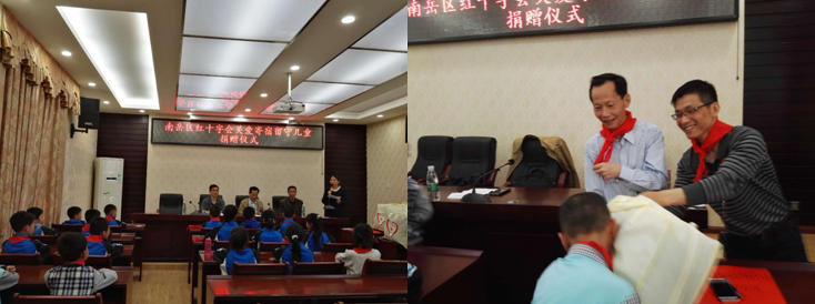 为纪念今年第70个“5·8世界红十字日”,今天下午,南岳区人大常委会副主任周孝华出席了区红十字会在金月完小举行的“情系寄宿学生·关爱留守儿童”捐赠仪式。仪式上,南岳区红十字会现场为学校寄宿留守儿童送上蚊帐70顶、夏被20床等生活用品,表达了对他们的关爱和问候。学生们也为他们献上了最珍贵的礼物 ——红领巾。
