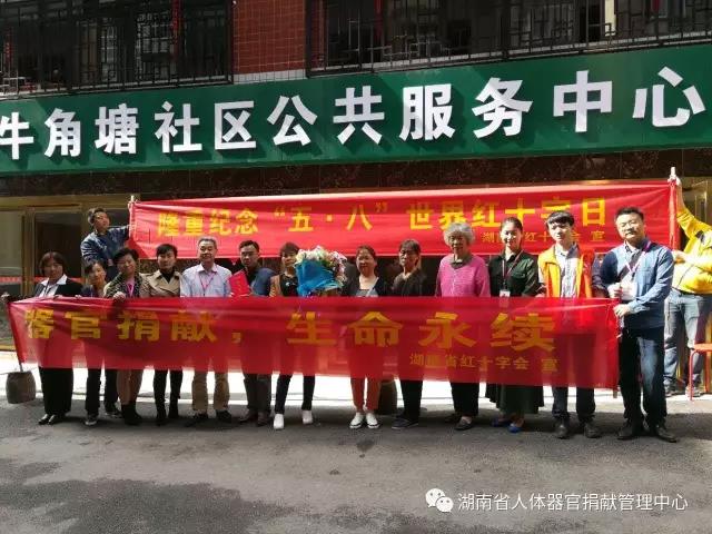 为进一步弘扬“人道、博爱、奉献”的红十字精神,继续积极推动器官捐献工作,当日,湖南省红十字会副会长王广宇带领省器官捐献工作人员及志愿者开展了对城区的部分社区和器官捐献者家庭的走访慰问和宣传活动。走访中,让我们再次欣喜的感到:我省的器官捐献移植工作在省委省政府及社会各界的关心支持下,在湖南省卫计委和湖南省红十字会及各移植医院、红会同仁、协调员及志愿者的努力下,工作有了长足的发展和可喜的成绩,老百姓对器官捐献的认识不断提高,让许多器官衰竭的患者生命得到了延续,而捐献者家庭的大爱行为越来越为世人所赞誉!