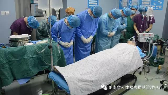 医护人员及见证器官获取的红十字协调员做最后的集体默哀