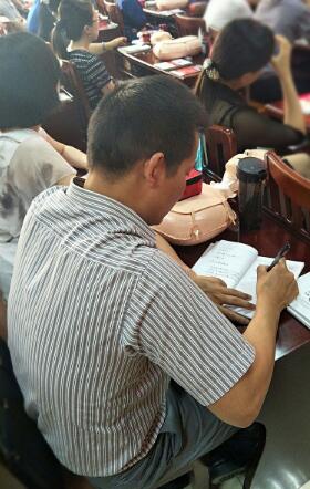 天气虽然炎热,学员们的积极性丝毫不减。下面带来现场学员的认真表现,看看我们的机关干部变成谦逊的学生: