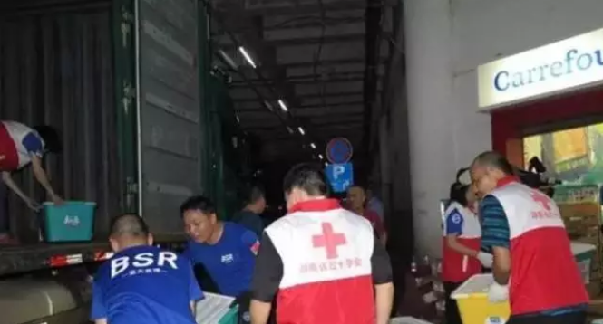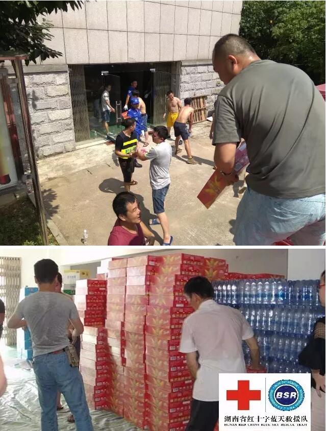 湖南省蓝天救援队一直密切关注着洪水灾情的发展,队长金灿于6月30日起向全队发布抗洪救灾备勤通知,要求具备相应救灾技能的队员24小时待命,随时准备参与救援行动。同日,湖南省红十字会向我队发布指令,要求我队组织人员于当日晚上10点在贺龙体育馆家乐福超市仓库将中国红十字会向灾区捐赠的水灾家庭物资包进行装车。接到指令后,队里立刻发出了任务通告,很快20个招募名额就报满了。晚上10点,参加任务的队员准时集结,并迅速开始投入装车任务中。