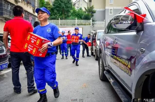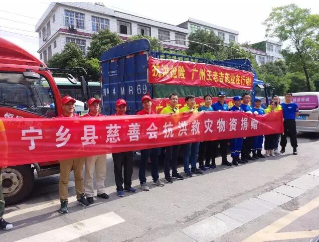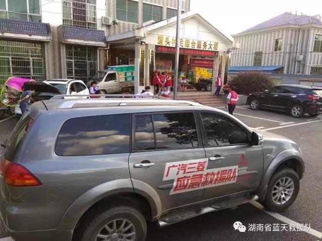 卸完物资稍做休整,金队通知队友们赶往宁乡城区的慈善会接收爱心企业王老吉药业公司向宁乡捐赠的物资。为方便我队在此次抗洪救灾期间的出行,广汽三菱特意将两台大马力帕杰罗越野车无偿提供给我们省蓝天救援队使用,而且,是加满油的!在此为广汽三菱的这份诚挚爱心点赞!。