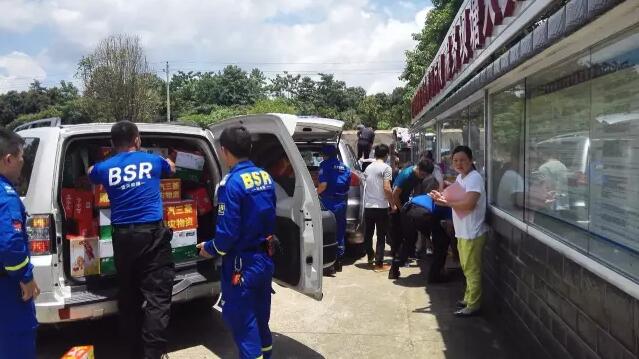 随后,队员们又随东鹏公司工作人员一同将一批物资装车送往当地的一个受灾村―――沩乌村村委会