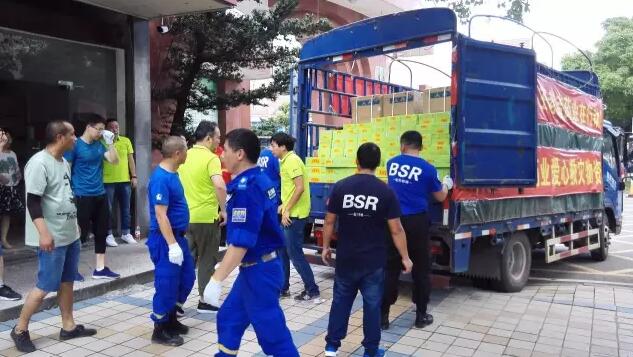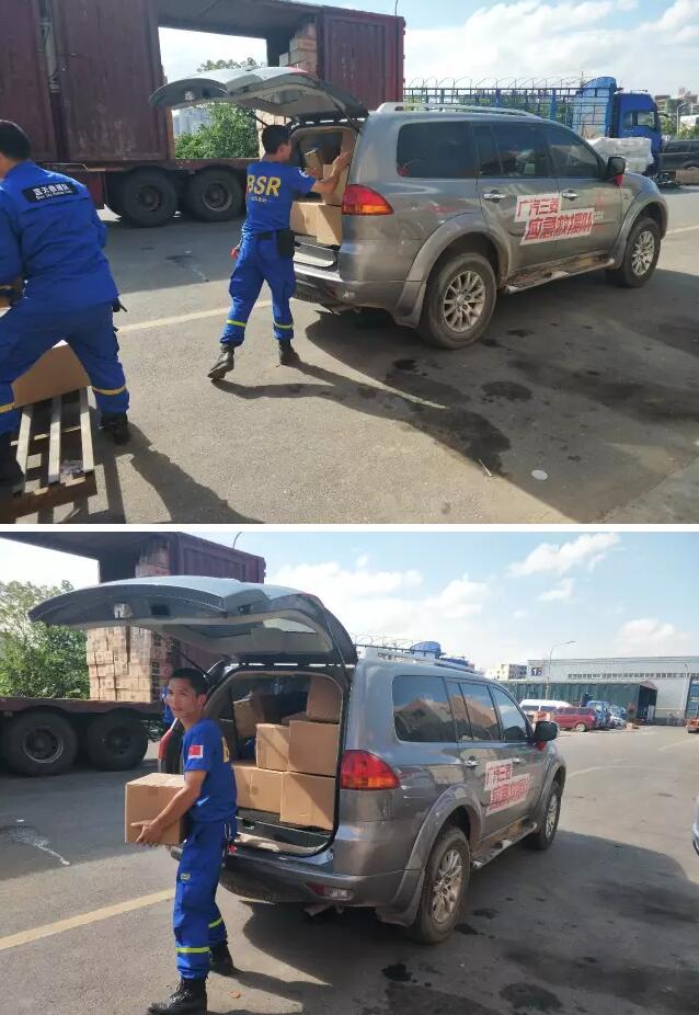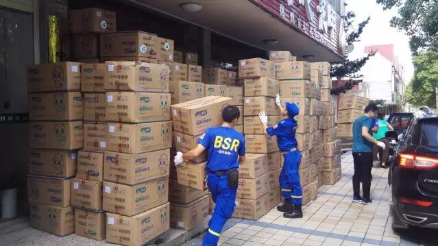 搬完物资,没有一分钟的停留,大家立即返回长沙,赶往黄兴镇物流园区将一批福建见习食品科技有限公司捐赠的50件物资转运到货运站,由货运物流发往受灾地新化县。