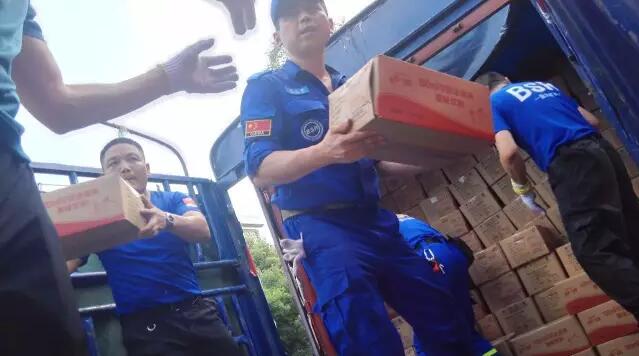 抵达宁乡慈善会时,“王老吉”还没到。但是慈善会的仓库不断有大量物资要入库或装车发往受灾地区,不用说,照惯例,蓝天队员们上!