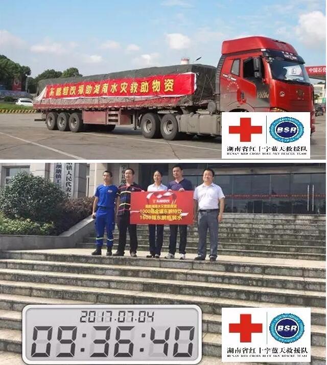 7月2日,湘江水位超过历史最高记录,省内逾400万人受灾。洪水无情,人间有爱!湖南严重的洪涝灾害,牵动着全国人民和爱心企业的心。7月3日,广汽三菱湖南公司向此次水灾的重灾区宁乡县捐赠的一批救灾物资,并请我队组织队员一起赶赴宁乡进行支援。上午7:30,蓝天队员、广汽三菱工作人员,省红十字会工作人员在省红十字会集合,物资装车。在简短的仪式后,9:30,车队出发。