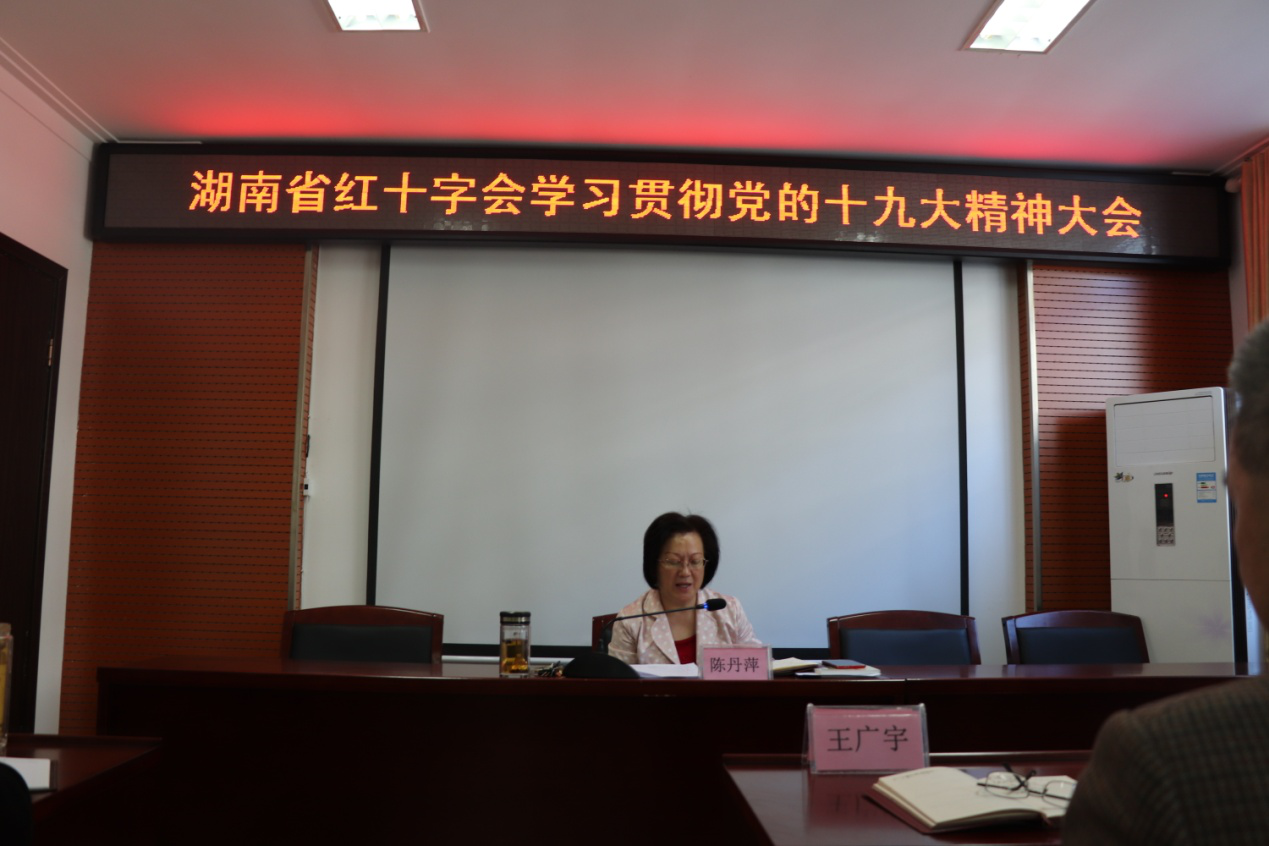 在会上,党组书记、常务副会长陈丹萍传达了10月27日省委传达学习党的十九大会议精神和10月30日中国红十字总会传达学习党的十九大精神暨宣传工作会议精神,然后带领大家学习了习近平总书记所作报告的精神、《中国共产党章程(修正案)》主要内容和中央纪律检查委员会工作报告精神。