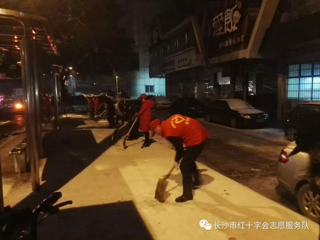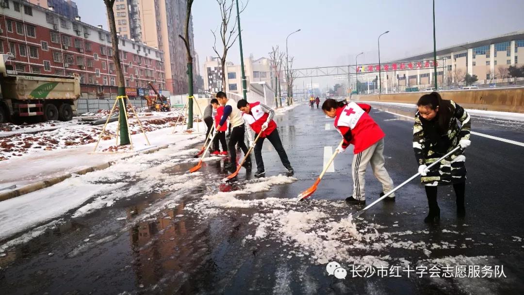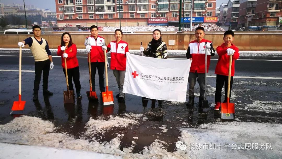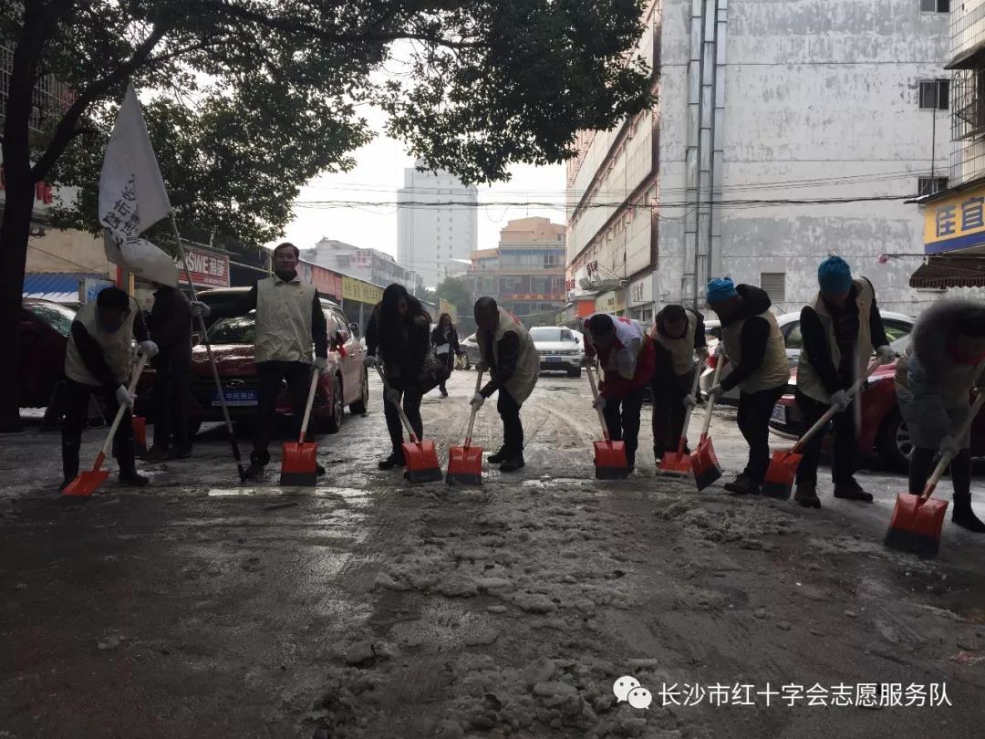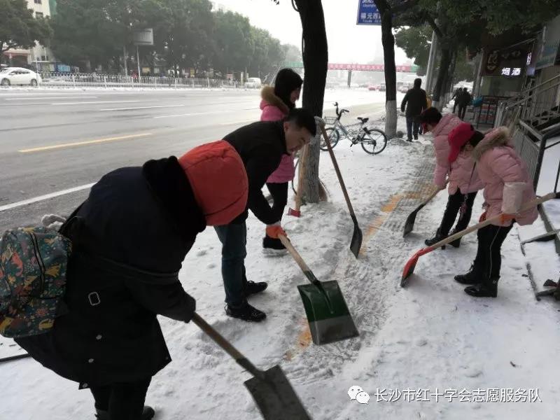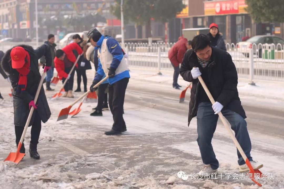 面对突如其来的寒流带来的冰雪天气,市政府启动了紧急预案和对应的措施,长沙市红十字会也紧急号召所有红十字志愿者行动起来,拿起铁锹,走出家门,加入到除冰铲雪大军中,不分团队,不分地域,哪里路上有雪,哪里就有红十字志愿者们的身影。