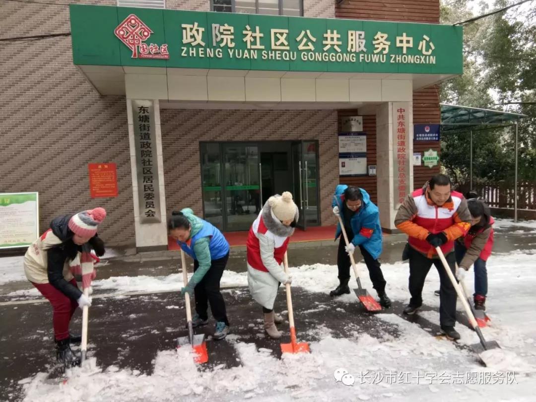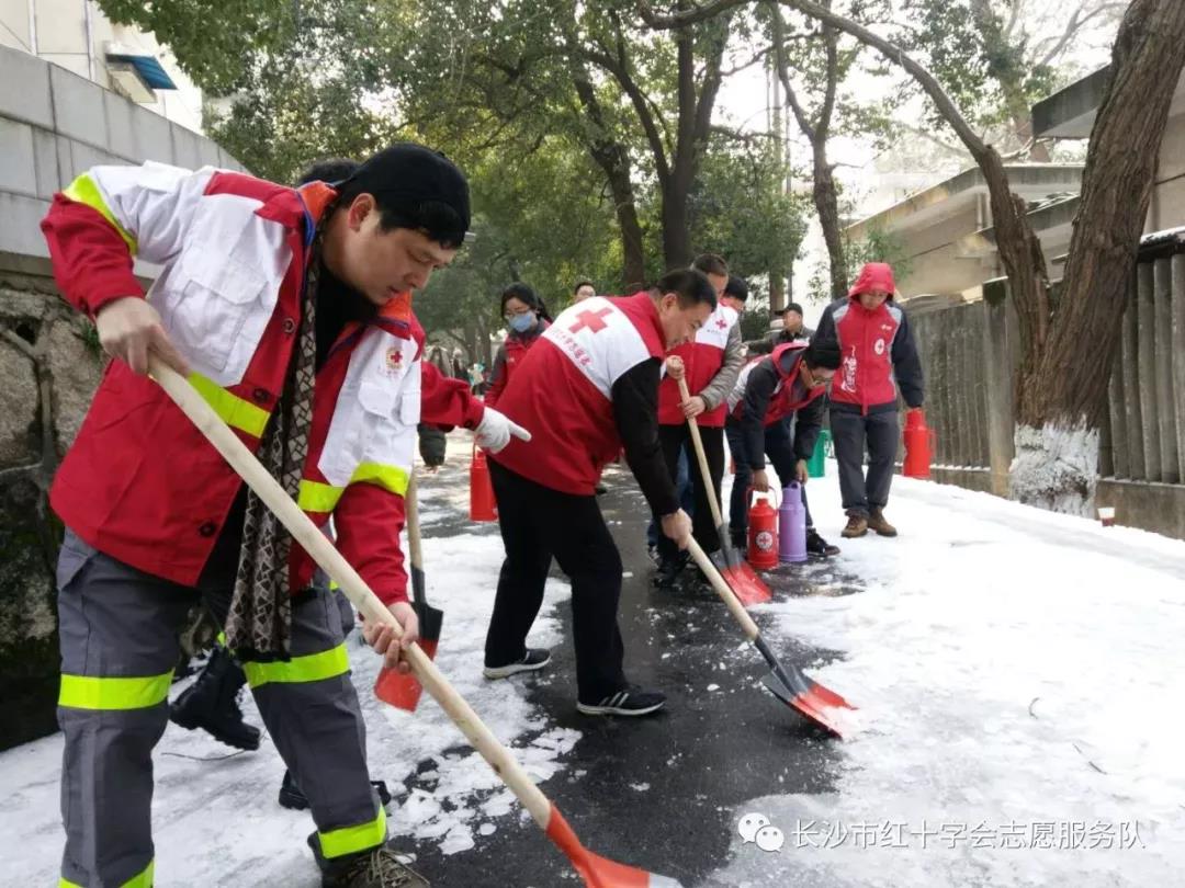 长沙市红十字会旗下近40个志愿服务团队,积极响应本次紧急倡议,采取就近服务的原则,迅速反应,积极参与到各自生活或者工作的街道、社区、单位....利用业余时间,用丰富形式协助当地政府,开展除冰铲雪工作。