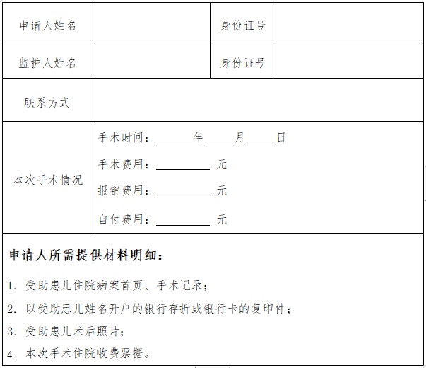 中国红十字基金会“中央专项彩票公益金大病儿童救助项目”先心病儿童补充资助申请表