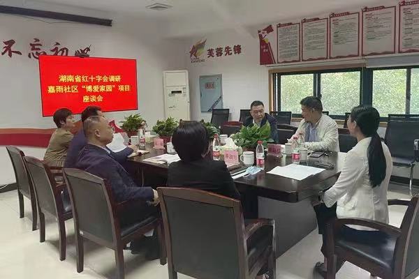 5月12日下午,湖南省红十字会党组成员、秘书长严国斌一行到芙蓉区东屯渡街道嘉雨社区调研“博爱家园”项目建设情况。