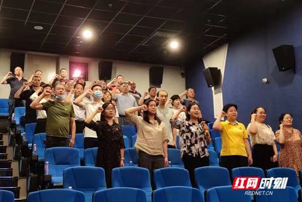 观影前,省红十字会党组成员、副会长邱梦丹带领全体党员干部集体重温入党誓词。