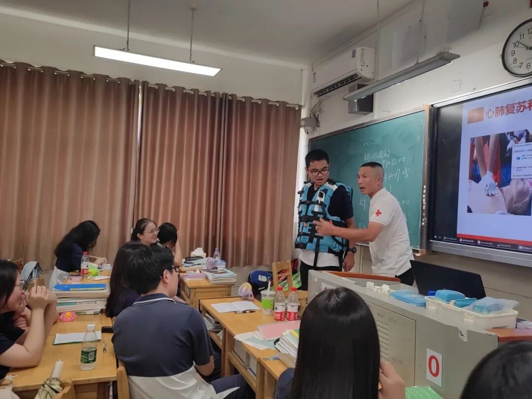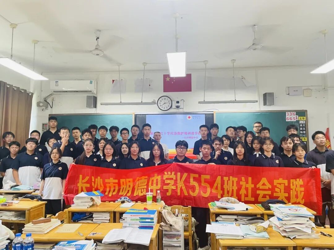 8月12日, 湖南省红十字蓝天救援中心应长沙市明德中学K554班家委会长邀请,在校给K554班学生们进行防溺水和应急救护知识宣讲。