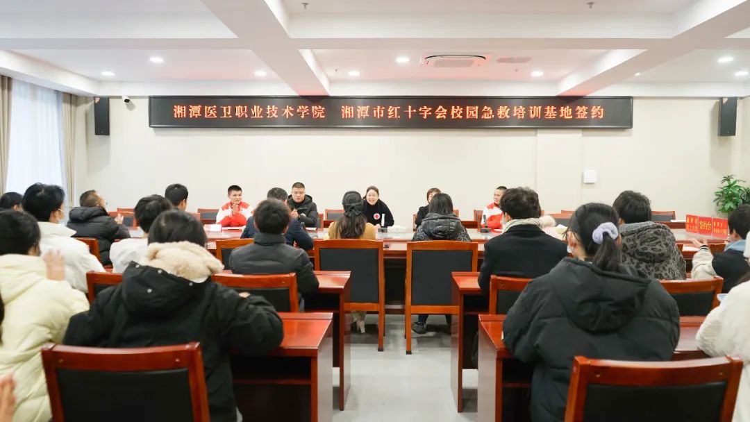 12月6日,湘潭市红十字校园急救培训基地签约仪式在湘潭医卫职院隆重举行。湘潭医卫职院党委委员、副校长刘晖,湘潭市红十字会专职副会长颜曼琳出席签约仪式,红十字应急救护培训师资代表及红十字志愿服务队学生代表参加。
