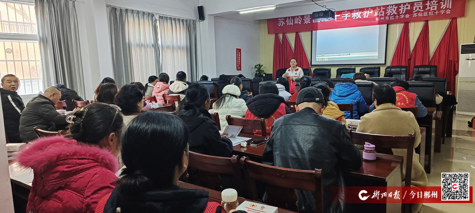 关爱生命,救在身边。为进一步做好旅游景区红十字救护站服务工作,为游客提供人道救护服务,保障游客旅游安全与健康,1月4日,郴州市红十字会第22期红十字救护员培训走进苏仙岭景区。