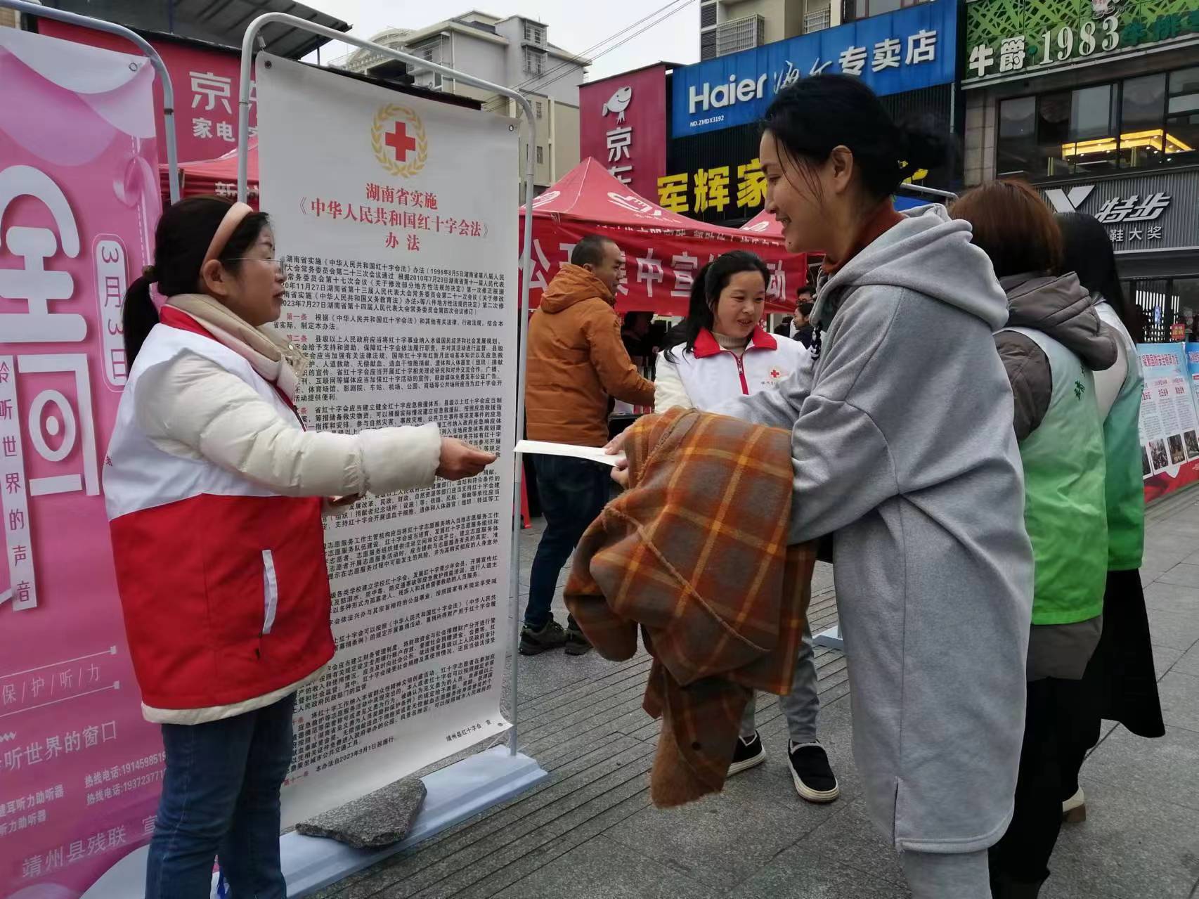 三月春风处处留,雷锋精神代代传。3月4日,在第61个学雷锋纪念日来临之际,靖州县红十字会联合县税务局、怀化市第二人民医院靖州分院、靖州志愿者协会等单位在靖州商业步行街开展2024年“学雷锋·文明实践我行动”主题活动,用新时代文明实践行动弘扬雷锋精神,践行红十字宗旨。
