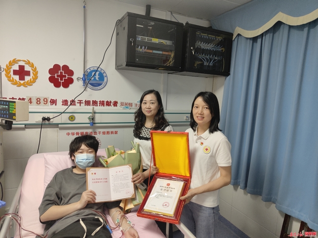 今年20岁的史同学说,“如果我的选择能挽救一个生命,想想都觉得很棒。”2022年11月4日,他第一次在湖南石油化工职业技术学校参加献血并且加入到中华骨髓库。今年4月22日,他接到岳阳红十字会的电话,经过沟通进行体检并于4月24日通过经过HLA 高分辨检验和身体体检,符合捐献条件。
