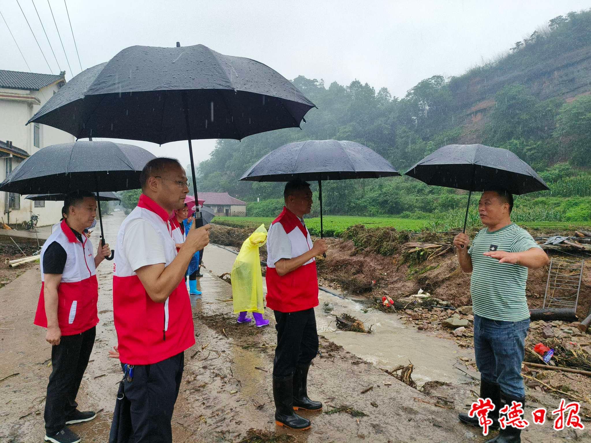 红网时刻新闻6月28日综合(常德日报记者 李白 通讯员 余超仁 文/图)6月26日,省红十字会党组成员、秘书长严国斌一行赴桃源县茶庵铺镇勘察了解灾情,指导市、县两级红十字会开展防汛救灾工作。