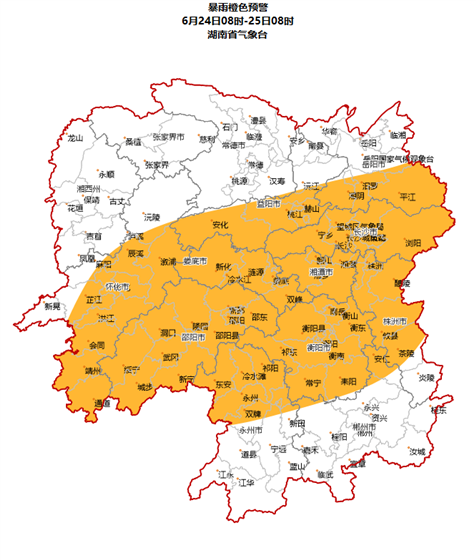 湖南省气象台06月24日06时发布暴雨橙色预警: