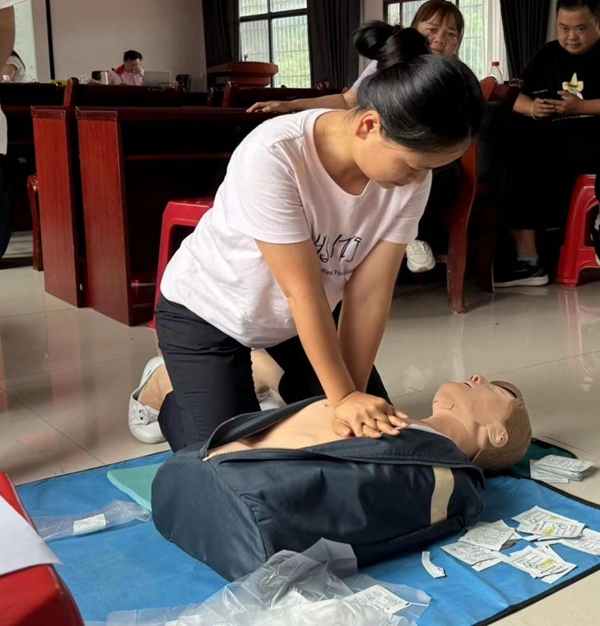 活动现场,培训老师生动、细致地向参训学员们讲授应急救护基本知识、心肺复苏、海姆立克急救等应急救护的核心知识与技能,参训学员专心听讲、认真记录。培训实操环节,培训老师为参训学员耐心示范,手把手指导参训学员练习心肺复苏急救实操技能,鼓励学员相互交流学习,确保参训学员都能掌握基本要领。