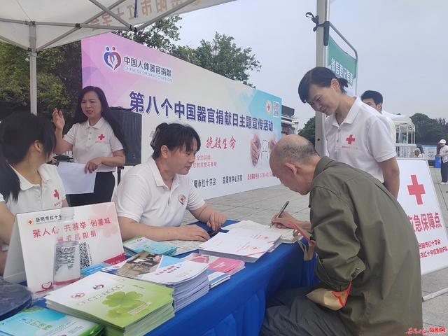6月11日,是第八个“中国器官捐献日”,为进一步推动器官捐献志愿服务工作深入开展,提高大众对器官捐献知识的知晓率,让更多的人成为拯救生命传递大爱的践行者,并宣扬健康生活理念,当天上午,由市卫健委、市红十字会、市中心医院举办的“器官捐献挽救生命—生命的延续需要您的关爱与奉献″主题宣传活动在巴陵广场举行。