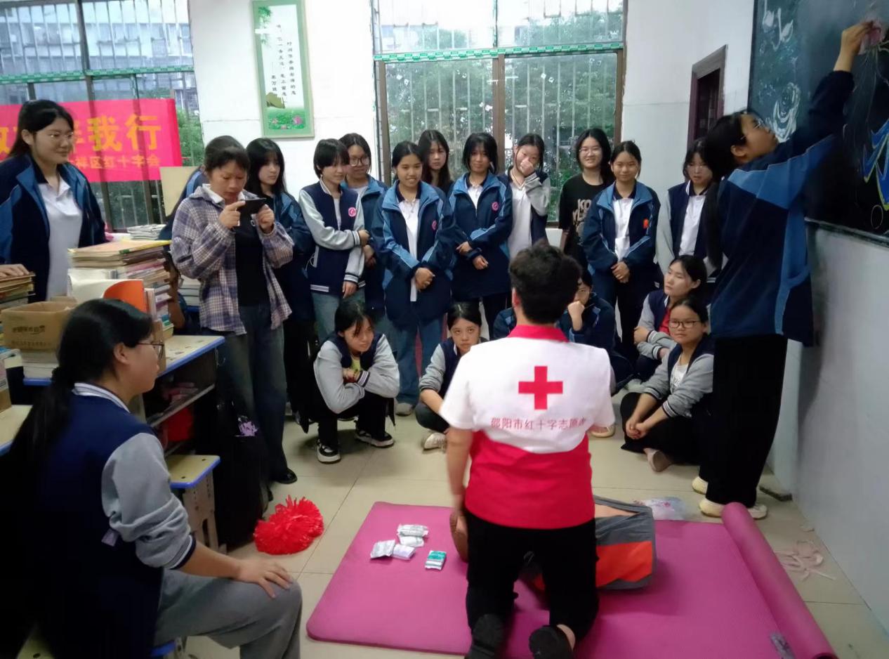 “如果遇到有人溺水、昏厥,大家知道如何施救吗?“6月4日至6月6日,大祥区卫健局、大祥区红十字会联合邵阳市红十字水上救援协会志愿者救护师资来到市女子职业学校,为学校师生开展红十字救护员培训。此次培训分三期,每期约50人,计划培训学员150人。