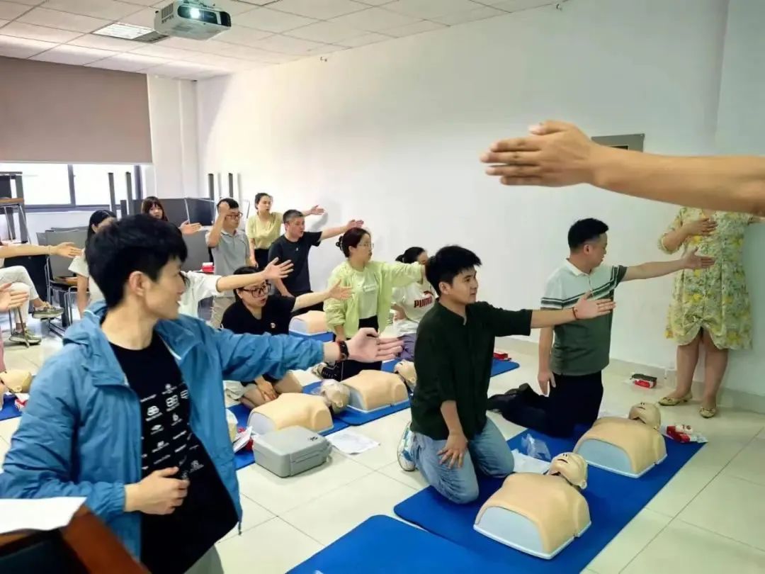 培训现场,市红十字会的救护培训师详细向大家讲解红十字运动的起源与历史,老师针对心肺复苏、创伤救护、急救包扎、多种紧急救护场景的应急处理流程、关键步骤和注意事项进行了细致讲解,并组织学员们开展徒手心肺复苏、自动体外除颤仪(AED)使用、创伤包扎等实操训练,确保学员们能够熟练掌握急救技能。
