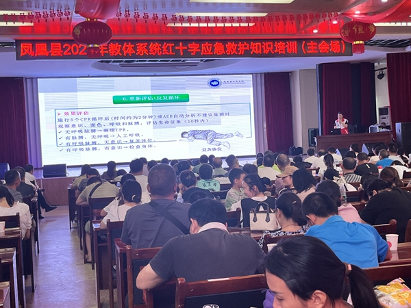凤凰新闻网8月29日讯(通讯员 麻秋菊)8月28日,凤凰县红十字会联合县人民医院、县教体局开展红十字应急救护知识培训,培训主会场设在凤凰县教师发展中心(凤凰二中),另外设箭道坪第三小学、思源实验学校、廖家桥学区、腊尔山学区、千工坪学区、阿拉学区、吉信学区等7个分会场,全县3000余名教师参加培训。