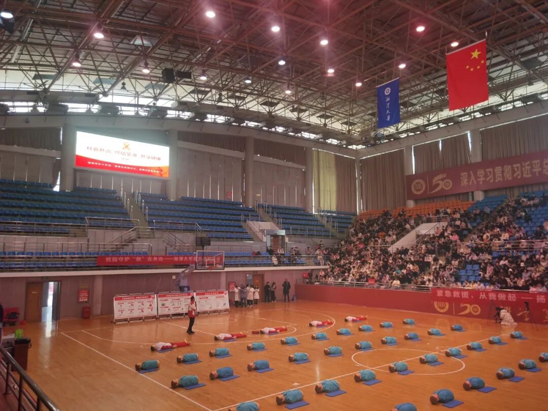 为进一步增强大学生面对突发事件和意外伤害的应急救护能力及对艾滋病的预防意识,12月8日下午,由湘潭市红十字会、湘潭大学校医院、市疾病预防控制中心、市120指挥中心、市中心血站、湖南工程学院艺术设计学院主办,市红十字志愿者协会承办的“救”在身边|心肺复苏(CPR+AED)培训暨防治艾滋病主题宣传活动在湘潭大学、湖南工程学院同步开展,1300余名大学生参加。