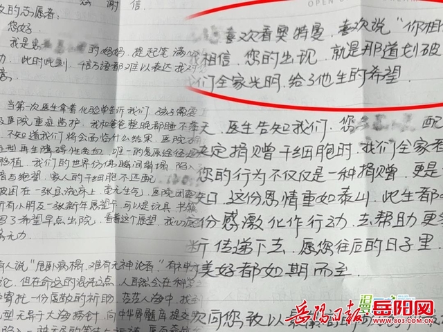 捐献过程中,梁杜祥收到了来自患者家属手写的一封信。信中写道:“孩子喜欢看奥特曼,喜欢问:你相信光吗?我们相信,您的出现,就是那道划破黑暗的曙光,给了我们全家光明,给了他生的希望。”看到这里,梁杜祥说:“很感动,我觉得能用我的造血干细胞,让别人重获新生,很值得!”