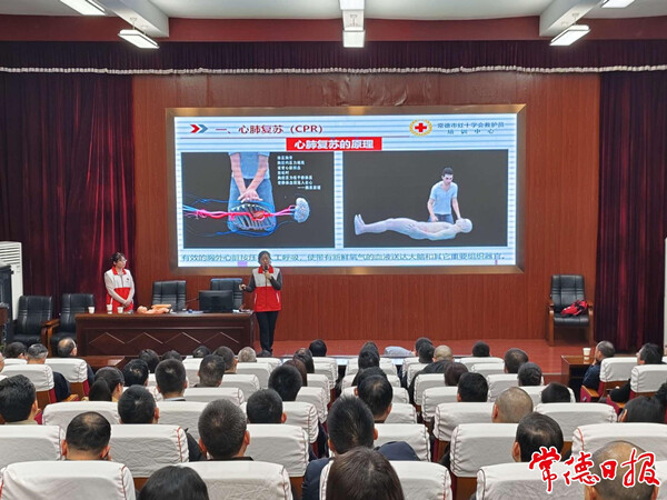 近年来,常德市红十字会健全完善应急救护培训常态化机制,开展红十字应急救护知识培训进校园、进企业、进机关等“七进”活动,营造了“人人学急救,急救为人人”的良好社会氛围,为社会平安稳定与发展进步贡献了红十字力量。