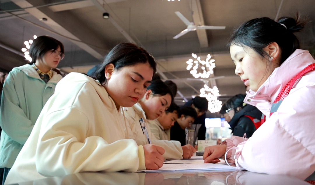 3月5日上午,大学生志愿者古丽革乃·托合提在填写献血者健康登记表。