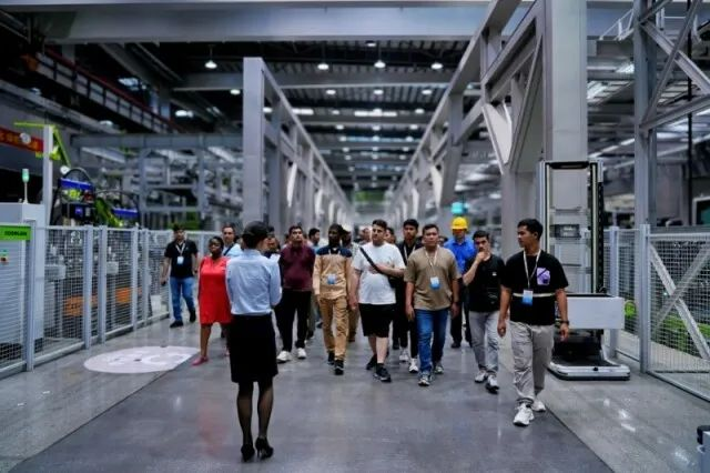 当天下午,研修班学员来到中联重科智慧产业城。在土方机械园区观看应急装备研发成果后,学员们深入总装车间观摩行业领先的智能制造流水线。随后的挖掘机表演环节,3台设备精准完成“跳舞”“穿针引线”等高难度动作,赢得现场掌声。