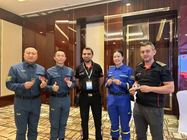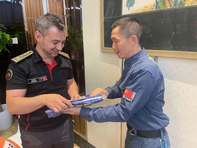 时隔两年,这份温情被穆罕默德重新唤起。座谈会结束后,他以当地最庄重的方式向湖南省红十字蓝天救援队行传统“贴额礼”,并与队员们互换肩章袖标。队员们则将一条绣着蓝天救援队队徽的围巾送给这位异国战友,以表纪念。