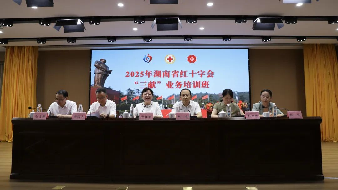 7月18日至20日,2025年湖南省红十字会“三献”业务培训班在湘潭韶山举办。湖南省红十字会党组书记、常务副会长冷晓君,省卫生健康委员会党组成员、副主任常实,湘潭市副市长李国大出席开班仪式并讲话。