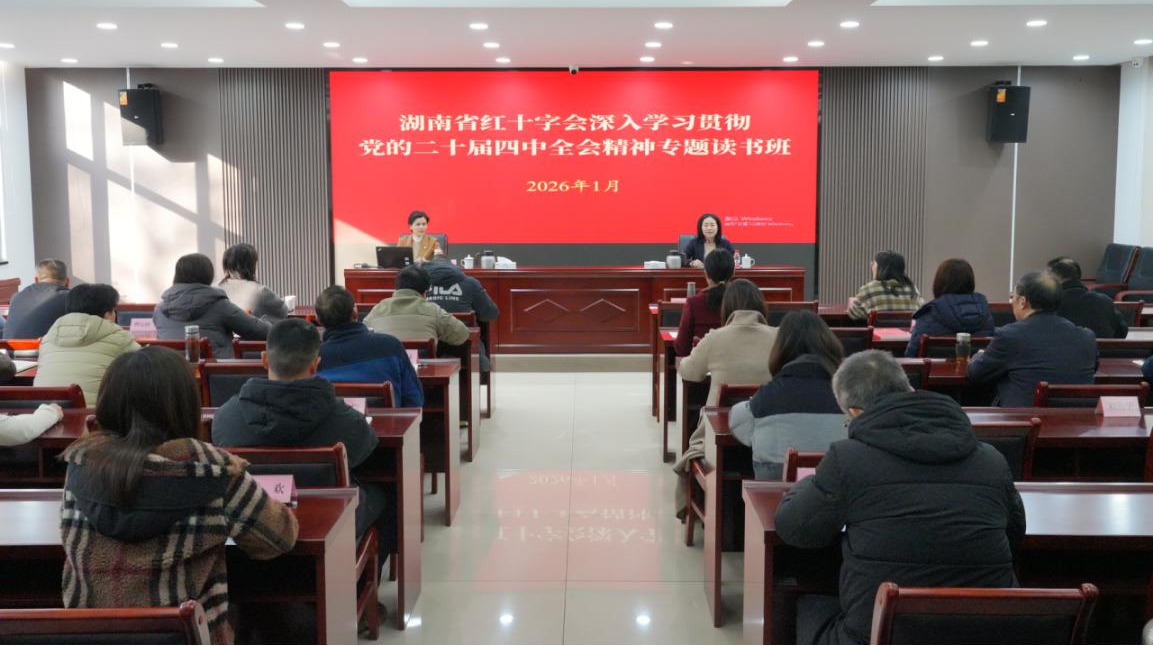 为深入学习贯彻党的二十届四中全会精神,引导全会党员干部职工切实把思想和行动统一到党中央决策部署及省委工作要求上来,1月7日,湖南省红十字会举办深入学习贯彻党的二十届四中全会精神专题读书班。党组成员、副会长邱梦丹主持,全会党员干部职工参加。