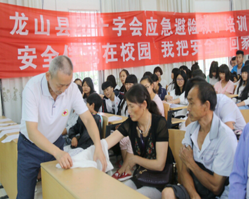 培训中,龙山县红十字会为培训人员发放防灾避险知识宣传单。随后的应急救护知识讲座重点围绕日常生活中一些突发事件的自救知识及技能操作展开,内容包括心肺复苏、创伤救护、意外伤害急救、灾难事故自救互救及逃生知识等知识技能,深受学员们的欢迎。 “人人学急救,急救为人人”。近年来,诸如地震、火灾、踩踏事件、交通事故等时有发生,各种天灾人祸令人猝不及防,掌握和熟悉急救知识显得十分必要。通过此次讲座培训,不但让学员们学到了应急救护知识,还提高了应急救护技能,取得了良好的效果。