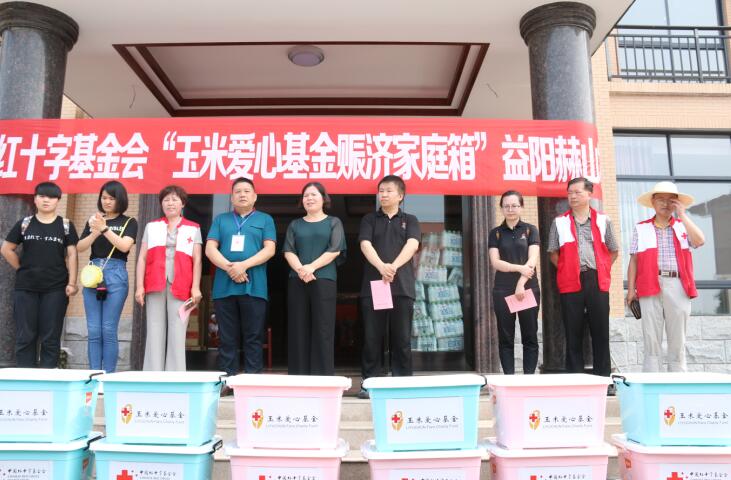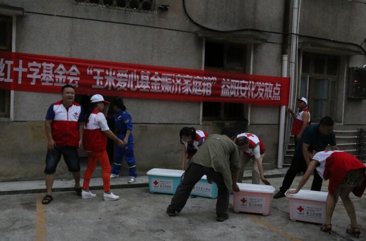 7月12日,中国红十字基金会胡星奇高级主管带队来我市开展赈灾救灾,将价值18万元的600个赈济家庭箱送达受灾严重的赫山区、桃江县、安化县,帮助受灾群众共渡难关。省红十字会副会长陈希武、市人民政府副市长黄东红等参与了救灾物资发放活动。