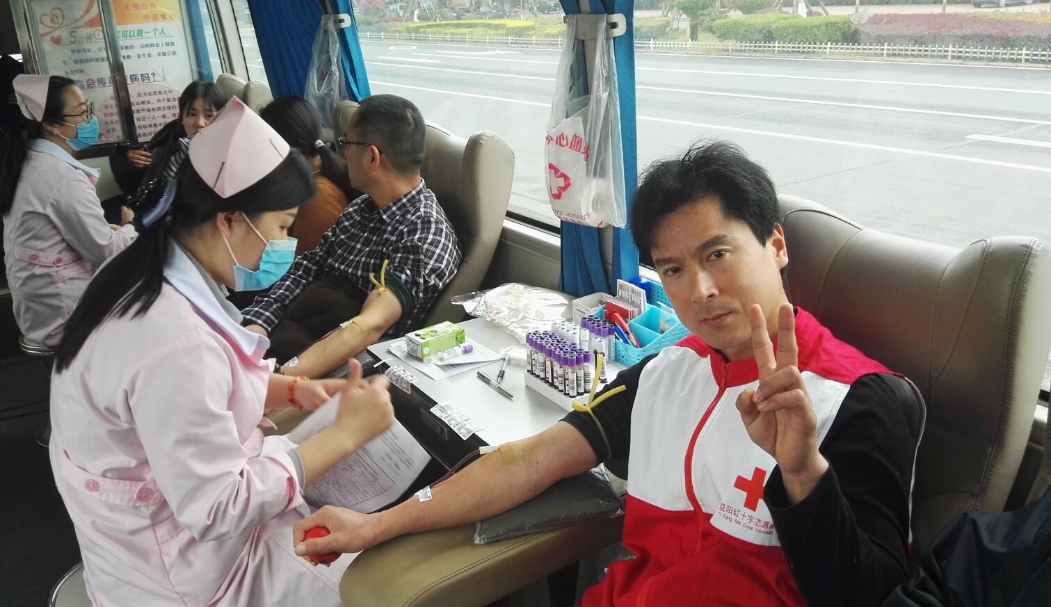 南县红十字瑜伽志愿服务队队长、大美南县人获得者——史四群参加无偿献血活动