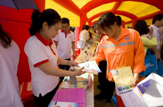 永州市红十字会工作人员向市民发放宣传资料