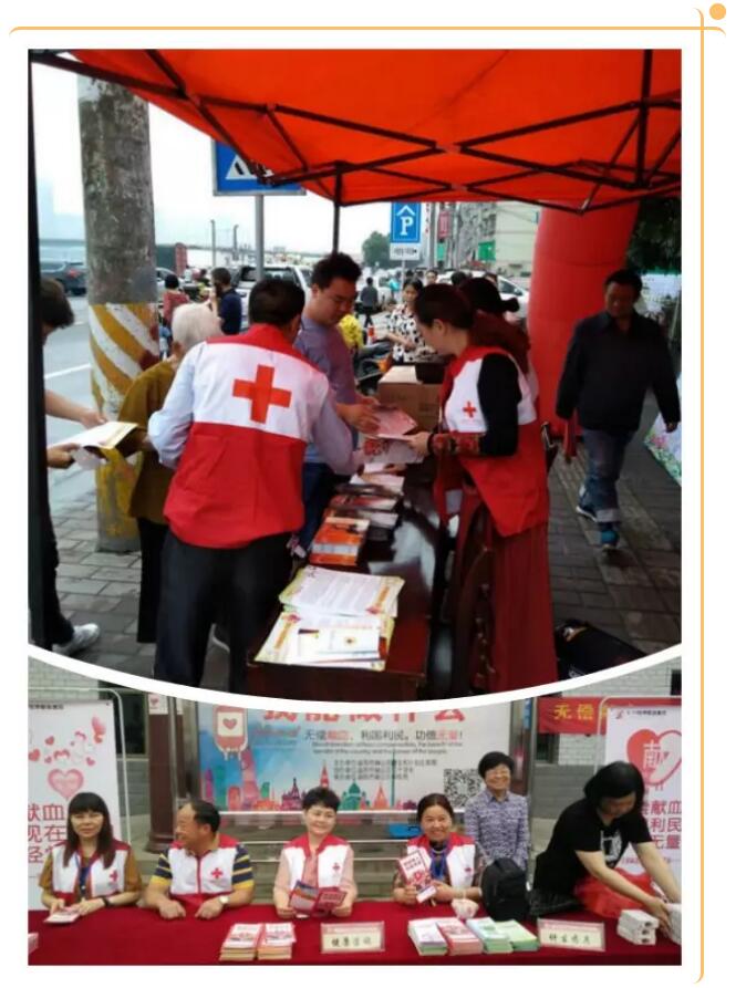 2017年6月10日上午,湖南省红十字会无偿献血志愿服务队开展了形式多样的无偿献血宣传活动。50余名志愿者分别在火车站、平和堂、五一新干线献血车等宣传站点现场发放无偿献血宣传材料、为过往人群进行献血咨询、引导路人献血。