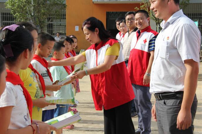 活动现场模拟火灾,组织防灾避险逃生集体演练,全校各年级同学根据事前的学习,按照学校广播与老师的统一指挥,依次、有序地从教学楼顺利转移到安全地带。市红十字会专职副会长伍友华发表讲话,赞赏了应急演练的成果,随后,与校领导一同向班级代表发放《中小学生自护自救安全手册》,并鼓励他们好好学习,赠书共480册。最后,由资深红十字救护师资为孩子们上了一堂生动朴实的急救常识课,告诉他们在碰到出血、溺水、动物咬伤、呼吸骤停等紧急情况下的最佳处理方法,孩子们听得津津有味,直到结束还意犹未尽。