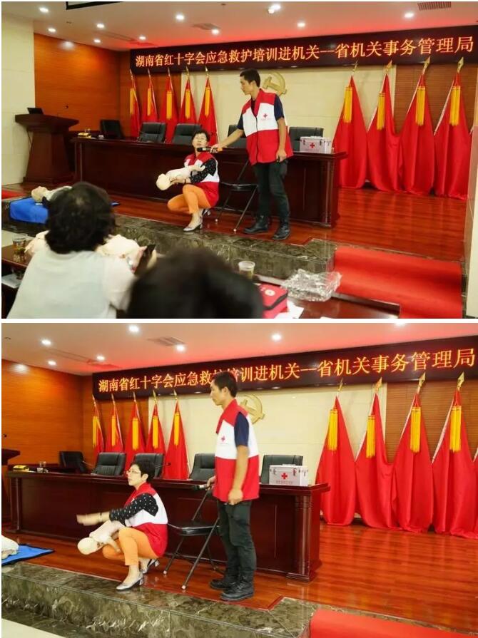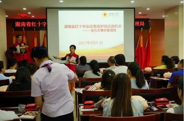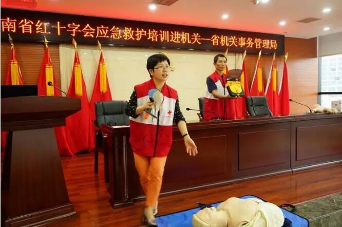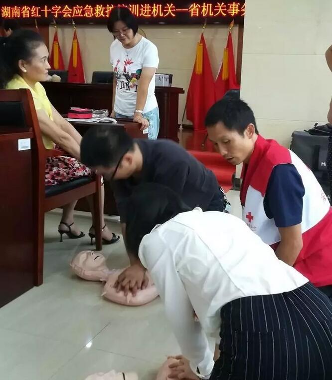 9月5日,湖南省红十字会将应急救护知识培训免费送进省机关事务管理局,此次培训内容为心肺复苏、气道异物梗阻的急救,以及自动体外除颤仪(AED)的使用。主讲老师由省红十字会核心救护师资、中南大学湘雅医院护理部李丽副教授担任,李老师有丰富的理论和实操授课经验。