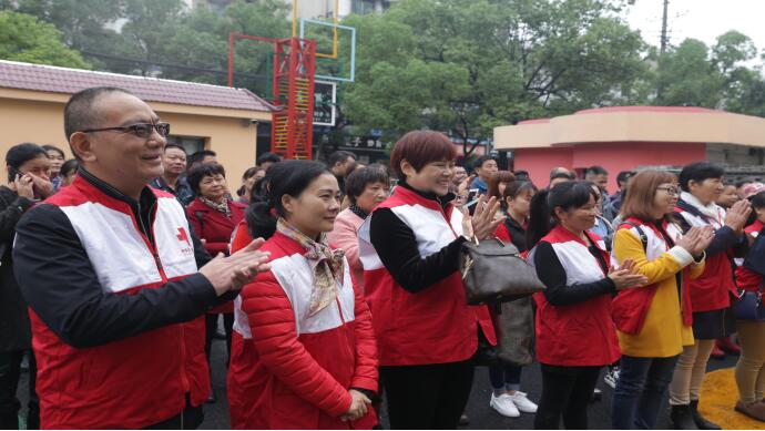 赫山区红十字志愿者、红十字救护员代表参加成立仪式