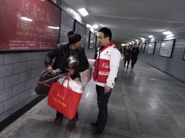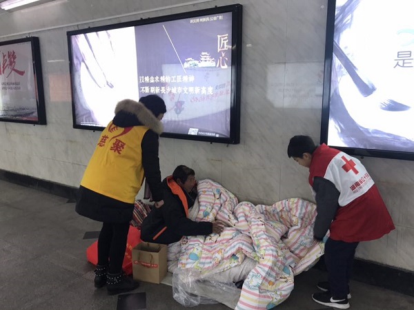 2018年01月29日,湖南省红十字会爱心志愿服务队、湖南长沙慈聚爱心助困中心紧急组织志愿者开展“爱心送暖,平安回家”关爱流浪人员的暖冬行动,尤其对年老、患病、缺衣、少被的流浪人员,作为重点帮扶救助对象,这些人需要全社会和爱心人士的关心爱护。
