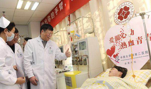 2018年2月6日,中南大学湘雅二医院血液内科造血干细胞采集室里,90后姑娘易善(化名)正在接受造血干细胞采集。一天后,她的“生命种子”将搭乘国际航班,去往大洋彼岸的美国马里兰,救治一位再生障碍性贫血患者。据悉,这是全国首例在湘采集的涉外(美国)造血干细胞捐献,也是中南大学湘雅二医院成为非血缘造血干细胞采集医院后首例采集。